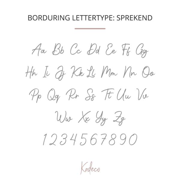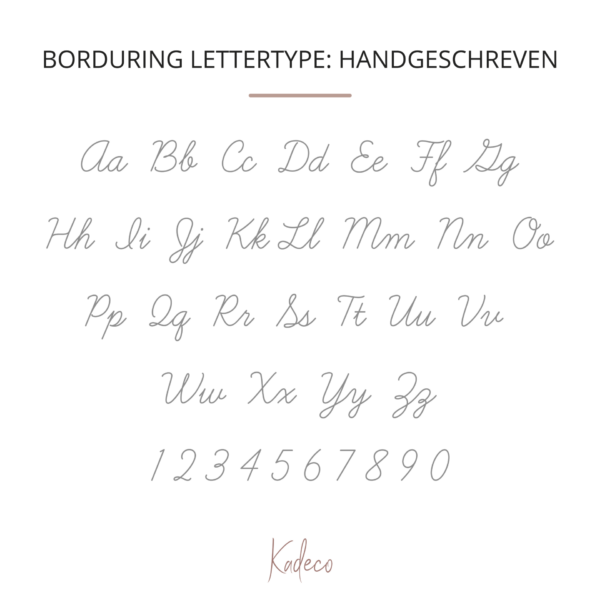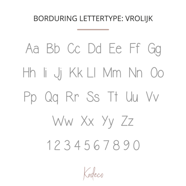 De lettertypes voor de borduring kan je tussen de productfoto’s vinden.
