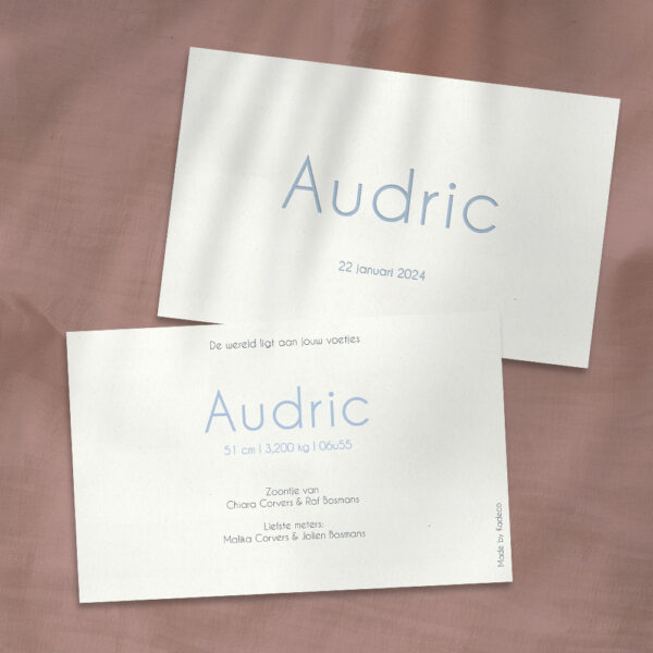 De verzending van het kaartje wordt opgenomen in je offerte net als extra’s zoals afgeronde hoeken, foliedruk etc. Je factuur ontvang je samen met je finale ontwerp, zodat deze voor de geboorte voldaan kan worden.